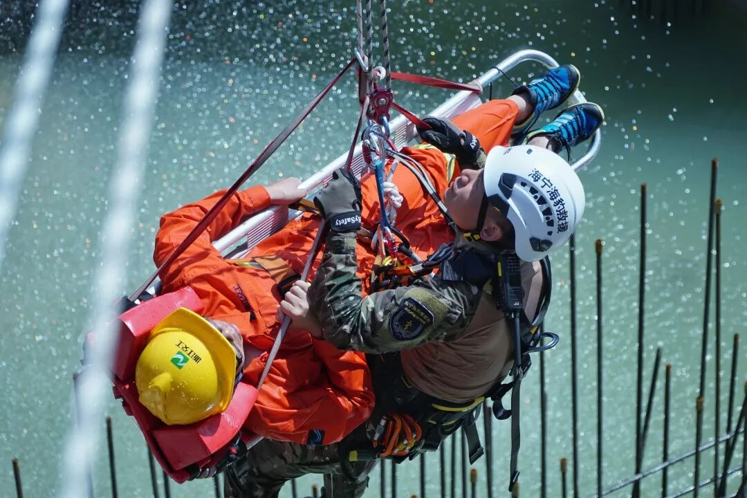 14时20分,随着嘉兴市应急管理局局长沈雨祥一声令下,演练正式开始。海豹救援队用应急绳索下降至基坑,对溺水人员进行紧急救援。随后,医疗救护组对溺水人员采取急救措施,将溺水者救上岸后,立即清除其口腔和鼻腔里的水、泥和污物,让溺水者保持头低、脚高的体位,有效对其进行控水。各参演单位和人员指挥协调统一,组织分工有序,应急抢险反应迅速,处置得当,既展现了抢险人员较高的训练水准和专业素养,又展现了一线防汛工作者良好的工作作风和精神面貌,真正起到了检验预案、锻炼提高、宣传教育的效果。